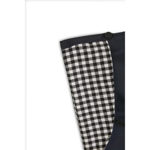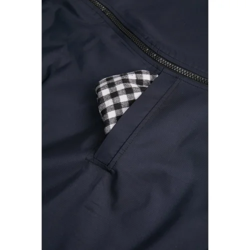 Önden ve yandan düğme kapamalı, büzülebilir kapüşonlu, 2 adet ön cep, 1 adet iç cepli, ayarlanabilen kol uzunluğu, sırtta asma kulbu.