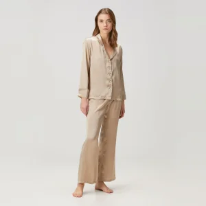 %100 İpek Solid Pijama Takımı.Kumaş içeriği %100 ipektir.