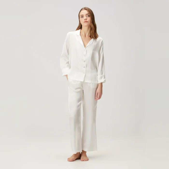 %100 İpek Solid Pijama Takımı.Kumaş içeriği %100 ipektir.