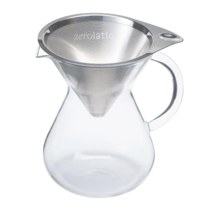 Mikro filtreli cam dripper, sade çizgisiyle demleme sürecini estetiğe dönüştürürken, el yapımı kulpsuz porselen bardak her yudumda doğallığı hissettiriyor.