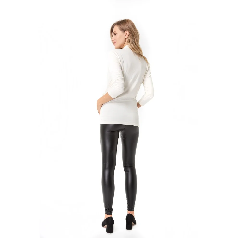 This soft blouse, which breathes and hugs your whole body thanks to its fabric content, is produced for your comfort, especially during pregnancy and breastfeeding. However, it is a timeless piece that can be easily worn afterwards. Thanks to the flexibility of the décolleté area, you can easily breastfeed your baby, collar deformation is not seen after breastfeeding. The body-hugging crossfade makes you look slimmer.