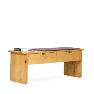 It is a product made of 1st class chestnut wood, complete with faux leather handle and cushion details for low dresser and/or seating purposes, including door entrance, wall bottoms, bed end, headboard and dressing room. It provides convenience to the user in every area with its cushioned and non-cushioned sales option. It is made of artificial leather and 1st class chestnut wood with high quality organic oil applied. Given the naturalness of the tree, each product will offer different patterns and textures. The cushion is included in the product.