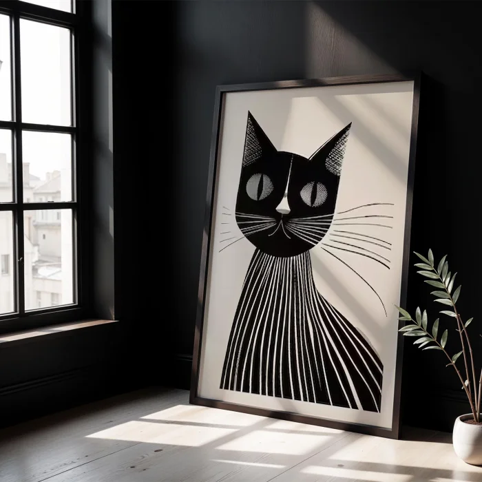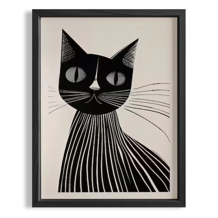 Product: Cat Portrait - Minimalist Striped Wooden Framed Wall Art