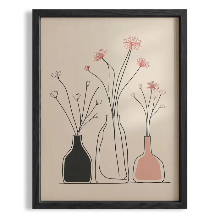 Product: Vazo Ve Çiçekler - Minimalist İncelik Wooden Framed Wall Art