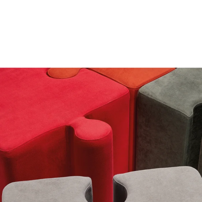 Fabric: Dark Grey. The artificial leather or fabric used in the puff upholstery is seamless and defect-free.