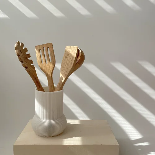 It is a nature-friendly PLA produced from sugar, the material which is natural. In other words, it is not from other mass-production materials such as petrochemical plastics. Since we want our products to maintain their naturalness, processes such as sanding, paint, or varnish are not applied to their final form.