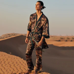 Kimono:-Oversized, -Silk-like texture, -Waist belt, -Wide flared sleeves, -Quick-drying, -Does not require ironing Pant:-Loose fit, -Silk-like texture, -Elastic waistband, -Wide legs, -Quick-drying, -Does not require ironing