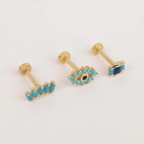 Product: 14k Gold Minimal Tragus Piercing With 5 Turquoise Color Baguette Stones