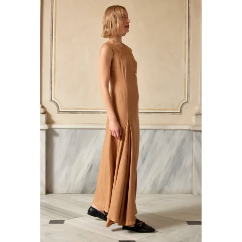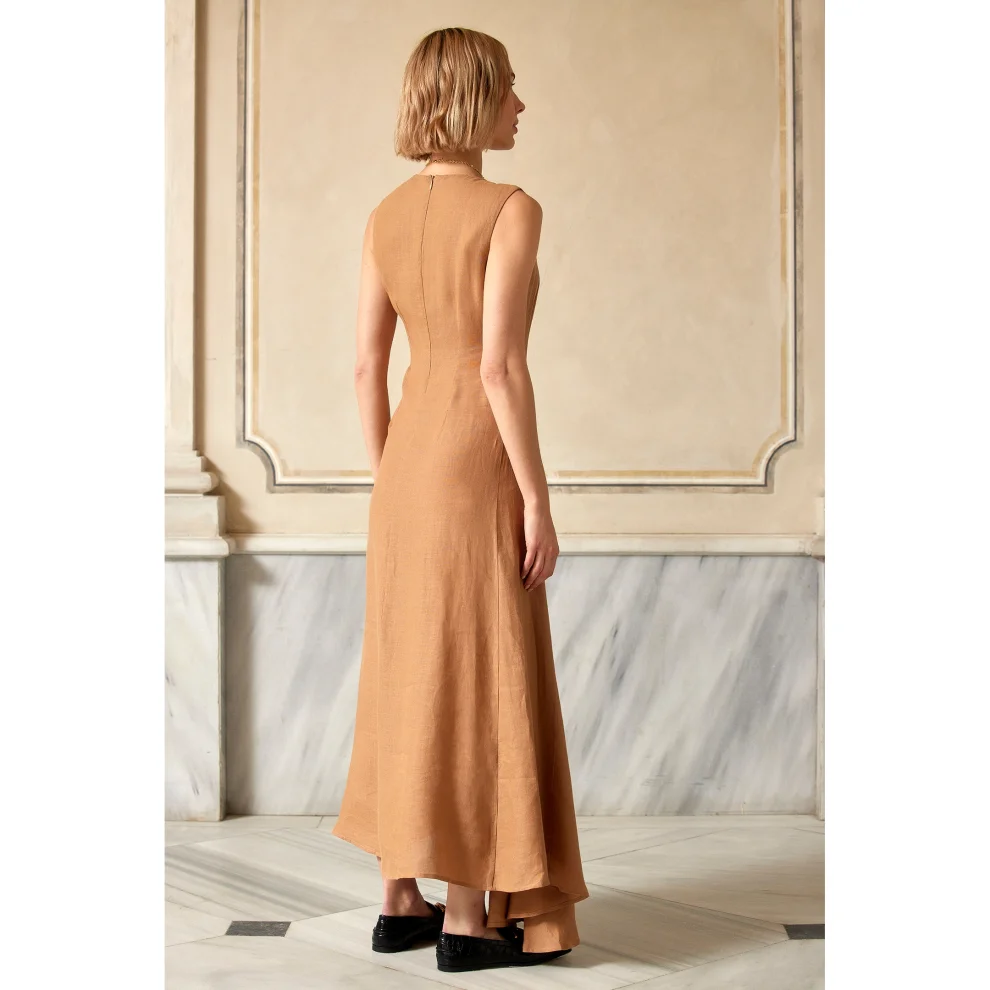 Sleeveless, crew neck dress with asymmetrical slit, 100% Belgian Linen, Model Size: S - Height:176 cm, Bust: 81 cm, Waist:64 cm, Hips: 89 cm