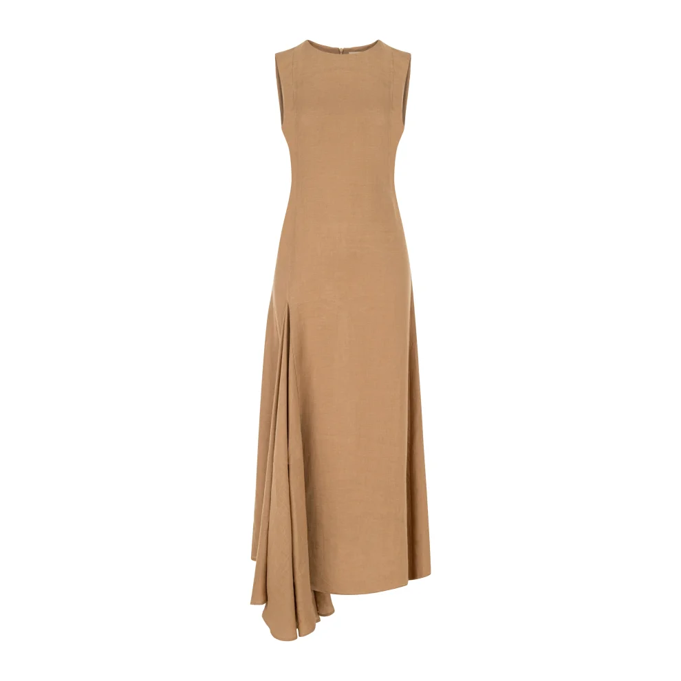 Sleeveless, crew neck dress with asymmetrical slit, 100% Belgian Linen, Model Size: S - Height:176 cm, Bust: 81 cm, Waist:64 cm, Hips: 89 cm