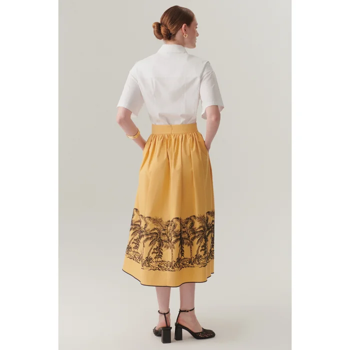 Offering comfort all day long with its breathable pure cotton fabric, this skirt adds an energetic touch to your style with its midi length design and patterns on the hems. It creates a modern and feminine silhouette while allowing you to move the comfortable fit freely.