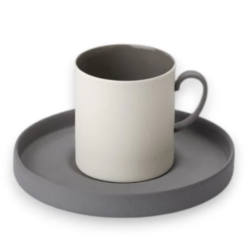 The inner surface of the cup and plate is shiny, the outer surface is matt                       Dishwasher Safe