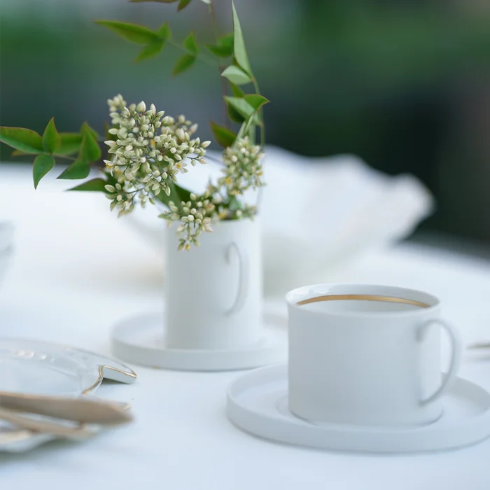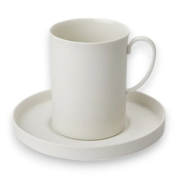 The inner surface of the cup is glossy outside matte The inner surface of the plate is matte
