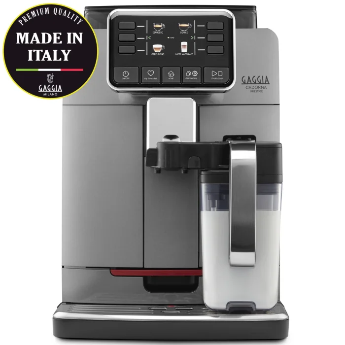 14 Different Drinks at the Touch of a Button You can choose one of the 14 delicious drinks in your memory at the touch of a button, or you can adjust the amount of espresso and milk, the temperature and the intensity of the coffee as you wish and create new flavors. 4 Different Profile Options It memorizes the settings of all the profiles you will create for 4 different users and is personalized according to your preference. In this way, each user can quickly access their settings with a single button. Optiaroma "Intense Aroma" This feature offers you 5 options, allowing you to increase the amount of coffee added for each cup and get a more intense aroma. So you get a unique coffee experience. Brand New User Interface Everything just got easier thanks to the high-tech widescreen display that lets you see all the settings at a glance. It helps you with the brewing and cleaning functions with its easy, intuitive and fully detailed customizable menu, tailored to your needs.100% Italian Excellence Made in Italy with a guarantee of high quality and a never-ending passion for the art of espresso making. Retractable Espresso Tray The built-in adjustable espresso tray is a special detail designed to make the perfect espresso with perfect cream. You can pull out the tray to make the perfect espresso, and push it in when you want to make drinks in tall glasses. Integrated Milk Tank The integrated milk container in the Gaggia Cadorna Prestige shakes the milk and removes its bubbles at the right temperature at the touch of a button. It also has the ability to clean automatically and store the container separately in the refrigerator. Aroma Insulation Cadorna Prestige's container of coffee beans retains its coffee aroma even better thanks to its hermetic cover. Ground Coffee Option In addition to the coffee bean option, an easy solution to prepare decaffeinated ground coffee mixtures. Fast Heating Boiler The quick-heat boiler delivers hot drinks from the first cup without keeping you waiting. Its secret lies in materials made of lightweight aluminum and stainless steel, which can quickly reach high temperatures. 100% Ceramic Grinders Long-lasting 100% ceramic grinders take the purest extract from the coffee beans, prevent them from overheating and burning, ensure long-term performance and quiet operation. Choose from 5 grinding grades, from thinnest to thickest, for the Espresso flavor you want. Removable Brew Group The heart of the machine does the dosing and tamping of the right amount of ground coffee for all your espresso. It can be removed from inside the machine and washed comfortably under the tap. It can be thoroughly cleaned as it can be easily reinstalled in place.