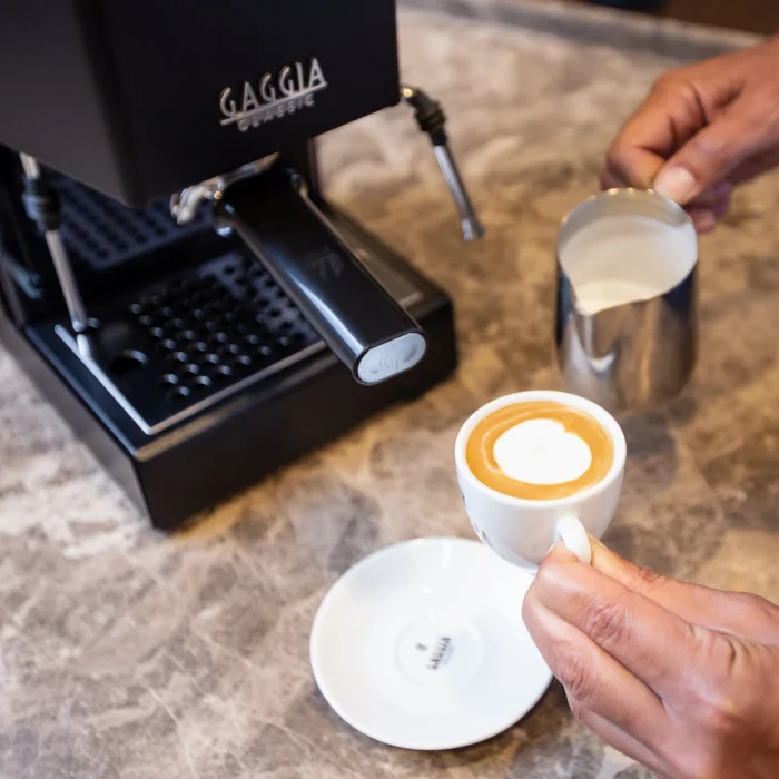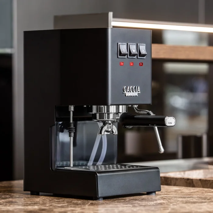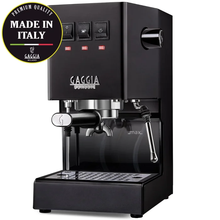 Designed and Manufactured in Italy High quality guarantee and made in Italy, the homeland of espresso machines. 58mm Portafilter The professional chrome brass assembly and 58mm filter holder are designed to improve the quality of espresso. Iconic Design Iconic design that reflects 80 years of Italian tradition, experience and experience. Professional Filter Holder The chrome brass group and filter holder, which are the same size, style and weight as professional machines, are designed to provide optimum coffee temperature and improve drinking quality throughout the entire brewing process. Professional Steam Wand The double hole professional steam wand makes the best milk froth for you to whip up the amazing cappuccino in the comfort of your own home. 15 BAR PRESSURE Powerful pump to prepare Italian espresso with a layer of "natural cream" Filter Kit Gaggia Classic comes with 3 different filters for ground coffee or coffee capsules, each with an expert level. Solenoid Valve The 3-way solenoid valve provides a constant control over the water pressure inside the filter holder. It guarantees a perfect drying of the coffee beans when the brewing is finished, which makes it easy to disassemble and clean. New intuitive interface New intuitive interface with dedicated indicator lights for on/off, Espresso and steam functions. New Body Texture A revamped stainless steel exterior to make the water level visible, a new drip tray to increase stability, and an iconic filter holder with the signature Gaggia "G". Stainless Steel Coffee Tray This steel tray, on which you can put 5 cups on top, takes advantage of the temperature generated by the machine to heat the cups placed on top and ensures that they are always ready for use.