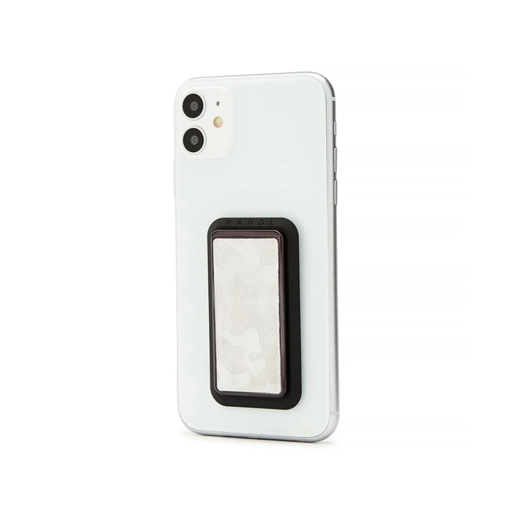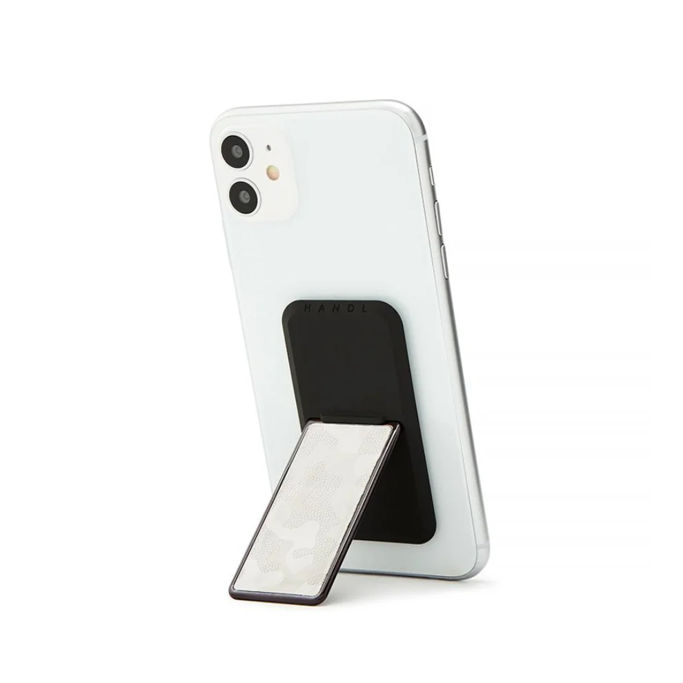 The HANDL phone grip and stand utilizes a patented elastic brace system that adheres directly to the back of your phone or case. Enjoy an effortless, secure grip – whether speaking, typing or taking selfies. The sleek multi-functional kickstand clips into portrait mode or flips into landscape for hands-free content viewing.