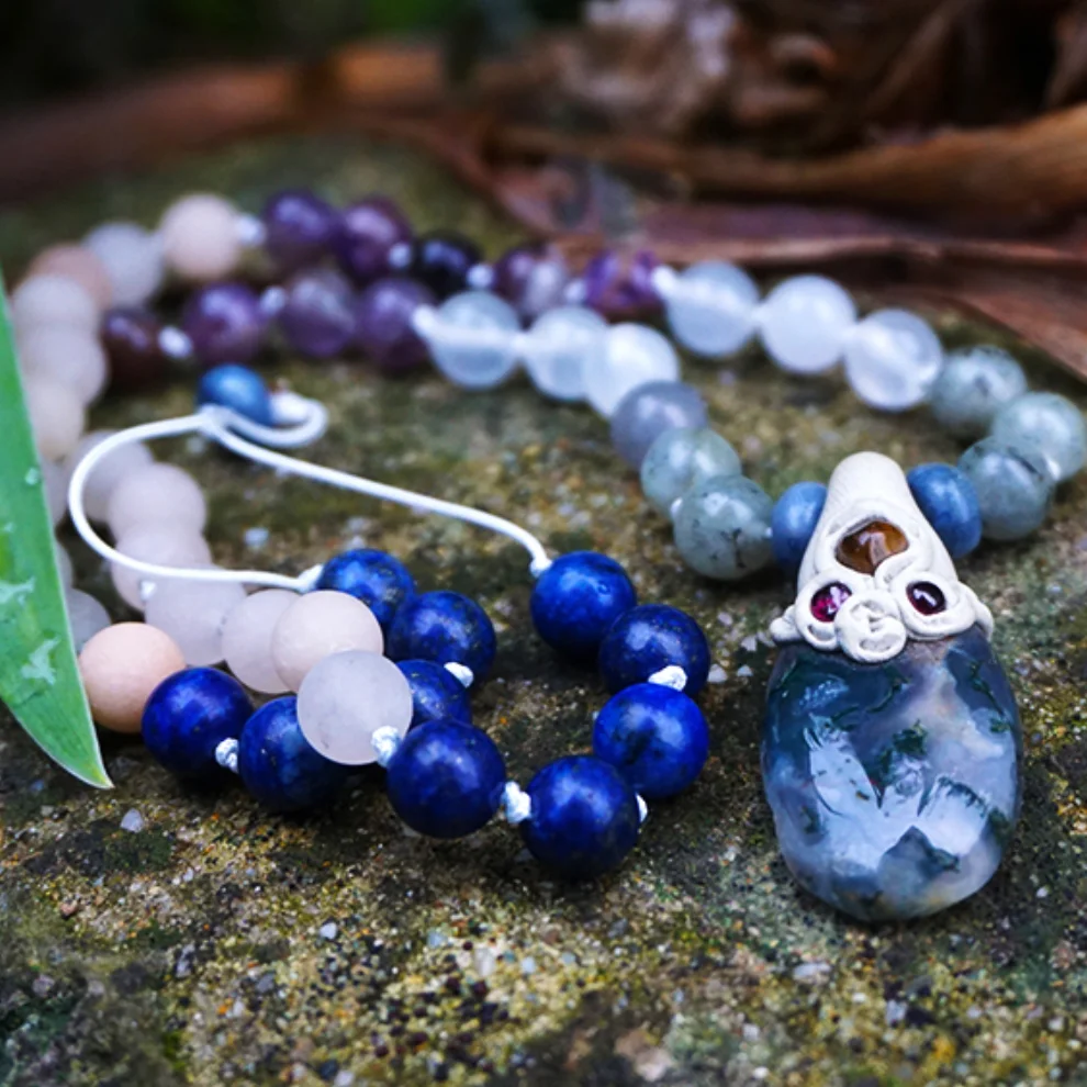 Every soul has energy in the universe and a migration takes place with every death. This migration is actually the beginning of eternity. According to the belief in reincarnation, the soul can choose to return or stay in a different dimension. This is a choice. This 54-stone prayer beads, which we coded with the intention of reminding us of our choices and power, is composed of Jade, Selenite, Labradorite, Lapis Lazuli and Amethyst, Rondela Coral stones. At the end, dough work and Opal Stone are combined to symbolize the spirits. Let it bring its owner to the whole and light the way..