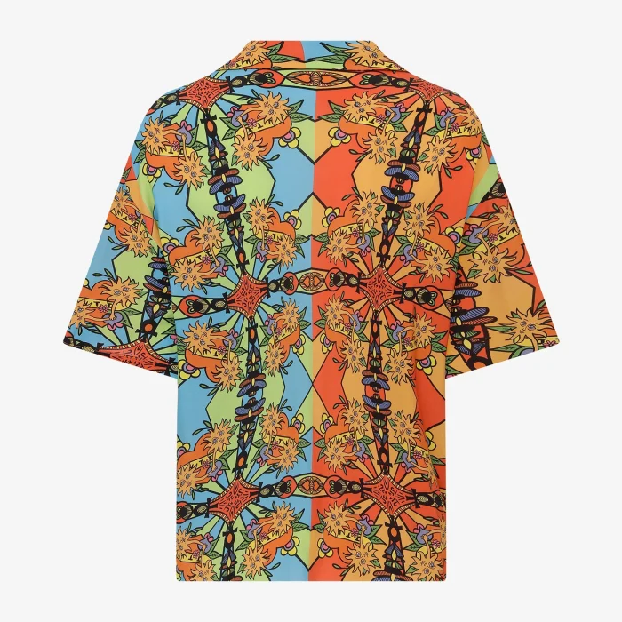 All-over graphic printed shirt with lshort sleeve. %100 Cupro %100 Vegan -certficated fabric.
