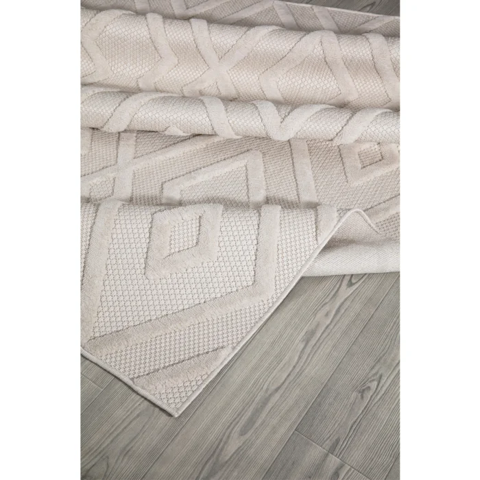 It is produced with Koza Carpet technology on high-speed computer-controlled machine benches with high stain resistance, long-lasting, durable and resistant to discoloration, with a density of 180,000 stitches, using polypropylene with the application of geometric patterns that give a modern and dynamic effect to the design.