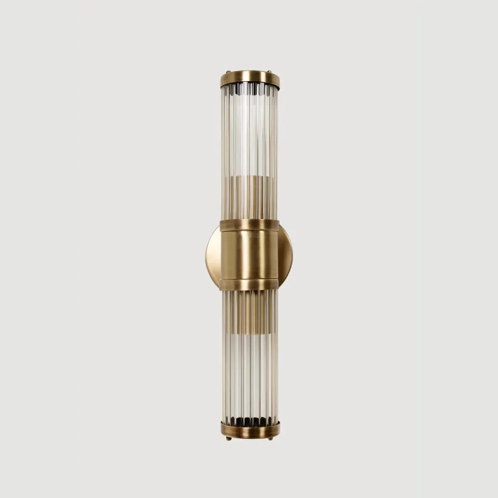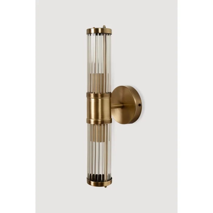 It is designed for those who are looking for luxurious and elegant lighting. With its transparent glass tubes and gold-toned metal body, it adds a stylish touch to interiors. It creates a sophisticated atmosphere in areas such as the living room, hallway and bedroom. Compatible with modern and classic décor styles, this sconce is ideal for those who want to add a warm glow to the decoration.