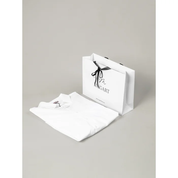 Carefully selected from a blend of 95% cotton and 5% elastane, our white classic shirt is designed to combine the elegance of natural texture with the flexibility of comfort. It offers the perfect balance between sophistication and freedom of movement.