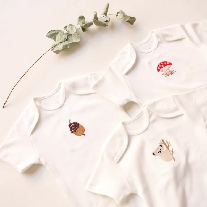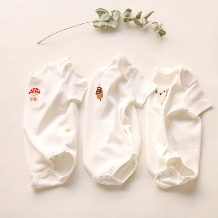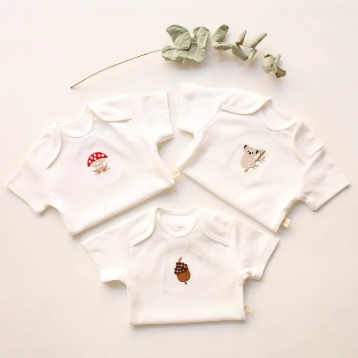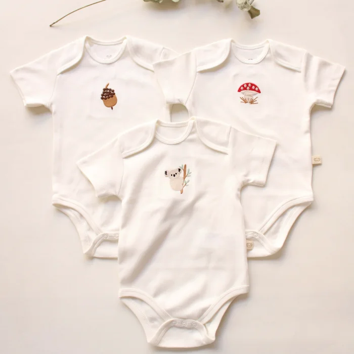 Product: Embroidered Snap-button Short-sleeve Bodysuit 3-piece
