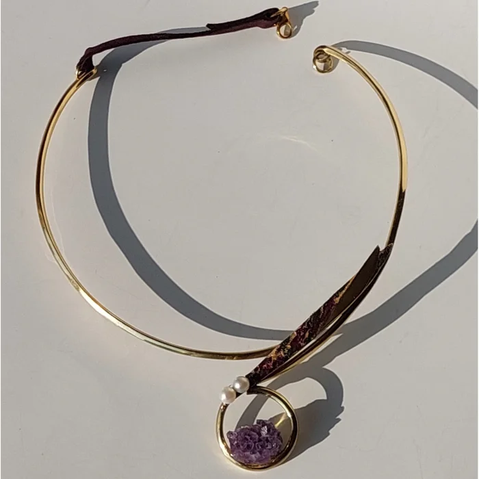 Its design is simple, but splendid and brave.This product is made of brass,amethyst and pearl , metal painting technique is used. The unique design and handmade production makes this product special .Our jewelries are shipped in Sava packaging. As the shape of natural stones are not the same, there can be slight dıfferences between the product image and the product itself.