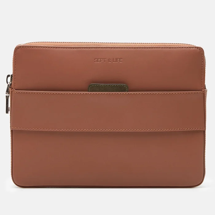 Zippered inner pocket and business card holder.
