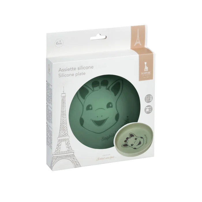 To accompany your baby at home or outside for their first meal... A plate made of 100% silicone, soft to the touch and unbreakable. It is easy to maintain and use, and is dishwasher and microwave safe. With the bust of Sophie la girafe, it's a great ally to learn to eat alone! Age: 6 months +. Directions for use: Dishwasher safe and microwave safe.