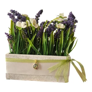 The LoveBear Lavender Garden adds romance and spaciousness to the setting. This artificial flower arrangement is adorned with elegant lavender sprigs and green flowers. Combined with the natural texture of concrete storage, this special design offers a gift option that is both decorative and meaningful.