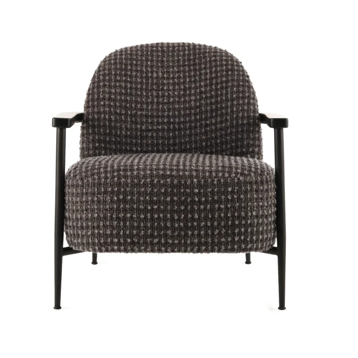 Product features: Metal parts are made of iron profile Electrostatic powder coated The wooden inner frame is made of beech timber and plywood The wooden arm part is made of chestnut timber The fabric is woven 32 DNS HR (soft) sponges were used in the session part It is reinforced with a down sponge to give the product its rounded lines Product Dimensions: 75x83 cm Height: 82 cm Product Care and Use: The upholstery and metal part can be easily cleaned with a damp cloth using natural cleaners Bleach cleaning products should not be used for cleaning Product Installation: Shipped assembled, no installation required