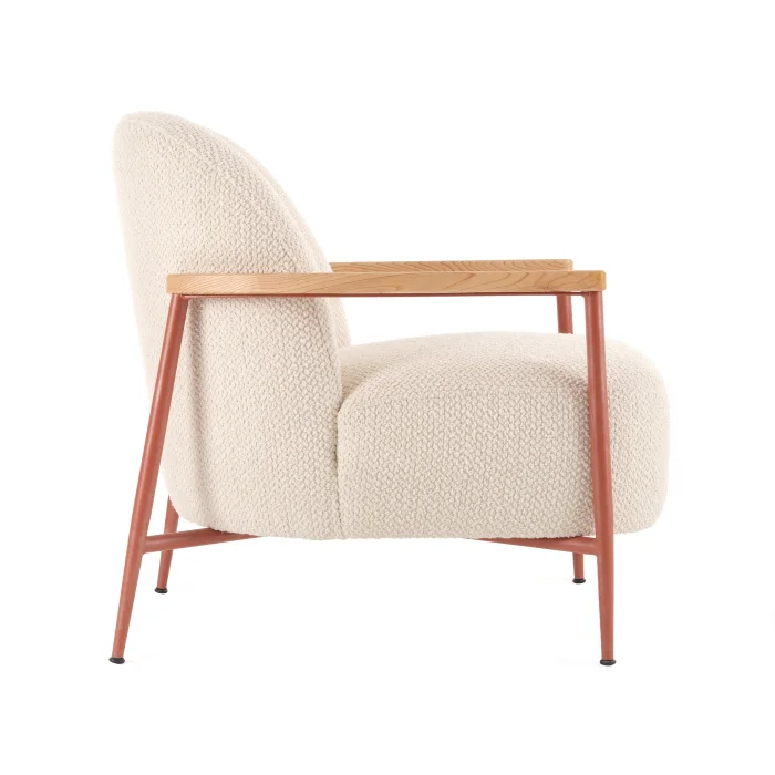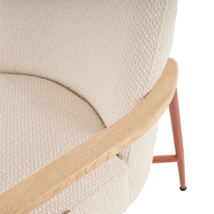 Product features: Metal parts are made of iron profile Electrostatic powder coated The wooden inner frame is made of beech timber and plywood The wooden arm part is made of chestnut timber The fabric is woven 32 DNS HR (soft) sponges were used in the session part It is reinforced with a down sponge to give the product its rounded lines Product Dimensions: 75x83 cm Height: 82 cm Product Care and Use: The upholstery and metal part can be easily cleaned with a damp cloth using natural cleaners Bleach cleaning products should not be used for cleaning Product Installation: Shipped assembled, no installation required