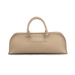 Features + Materials * Cream Beige Faux Leather * Smoked Suede Lining * Zippered Closure * Dimensions: 45cm width x 16cm height x 11cm depth * Silver Logo: 8.5cm Width x 4cm Height * Made in Turkey.