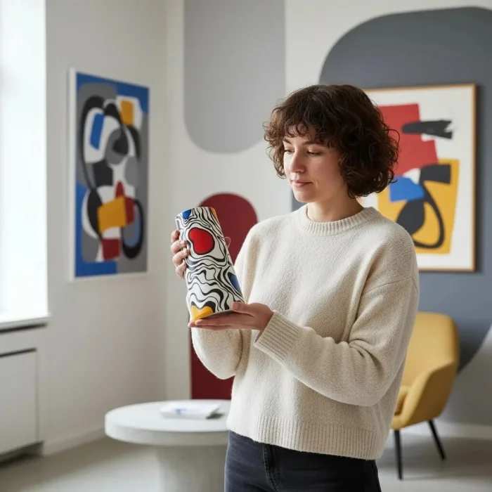 exterior and interior are all handpainted. The surface of the vase is covered with varnish specially produced for concrete products.