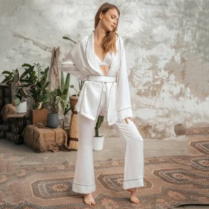 The Elegant Collection series is designed with pure materials. It is a product of top quality materials and design.Silk pajama set is delivered in a special cover. Dry cleaning or hand washing with cold water is recommended.