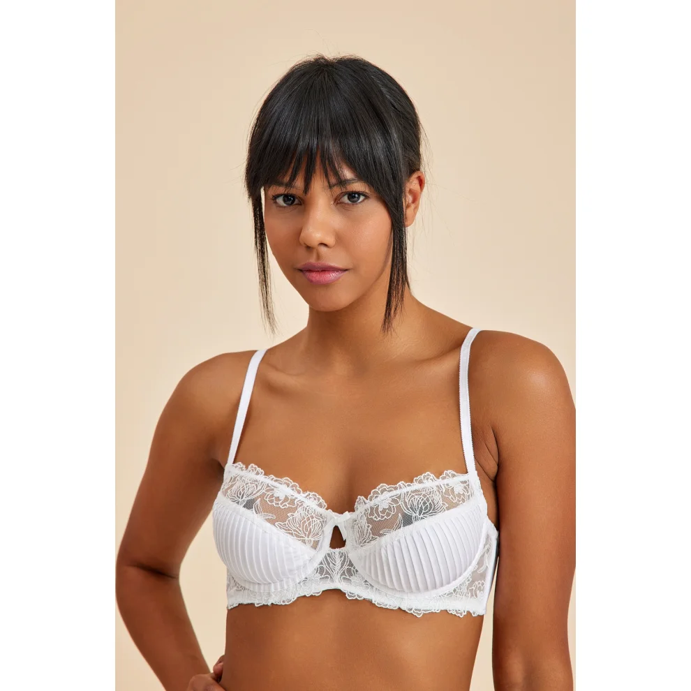 This bra has been carefully designed to offer an elegant and comfortable wearing experience. While it provides a gentle touch to your skin with its ribbed and soft texture, its uncovered structure gives a feeling of freedom. Fancy suspension elastics and adjustable details fit perfectly according to your personal preference. The specially designed front décolleté detail will add elegance to your look. Thanks to the inner lining on the wings, it provides both support and comfort. Its adjustable agrafs allow you to adjust the bra to your liking, ensuring a comfortable experience all day long. Decorated with embroidery, this bra dazzles with its elegance and stands out with its elegance at the same time. The harmony of ribbing and broide makes this piece unique and makes you feel quality in every detail. This bra is an ideal choice for both everyday wear and special occasions. Because it offers a perfect balance for both those who want to look stylish and those who are looking for comfortable clothing.