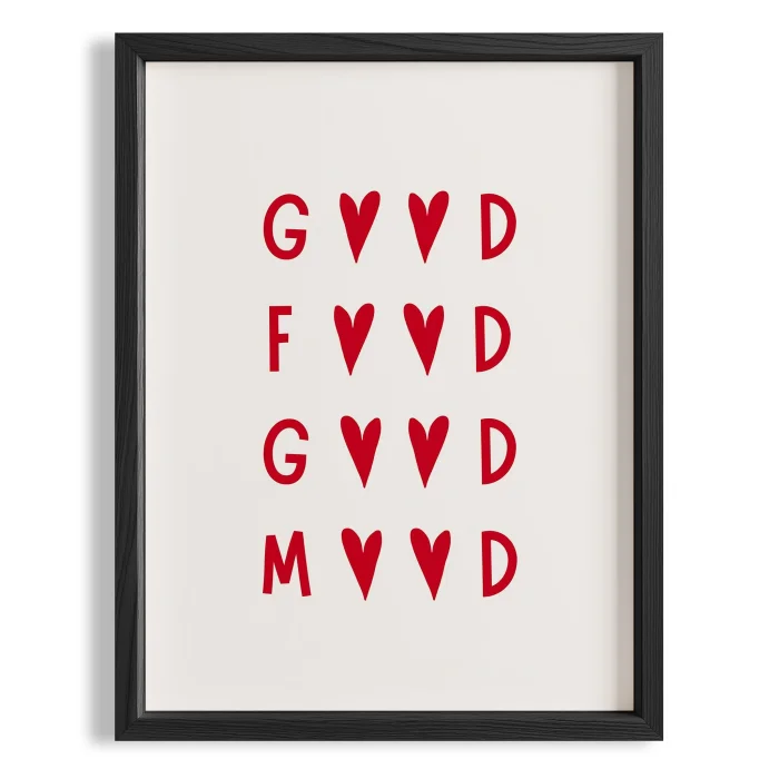 Good Food Good Mood Minimal Red Typography Kitchen Wall Art