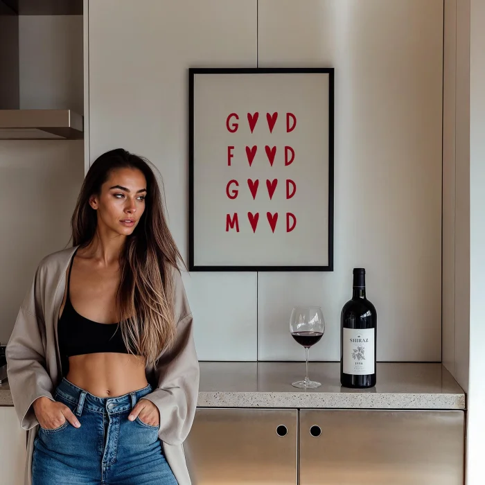 Product: Good Food Good Mood Minimal Red Typography Kitchen Wall Art