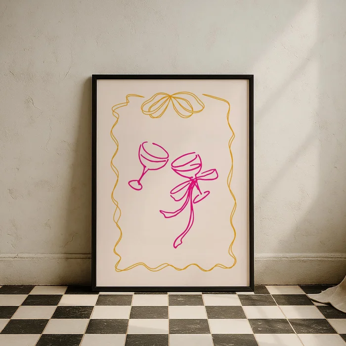 Product: Kurdeleli Glasses Minimal Drawing Kitchen Wall Art
