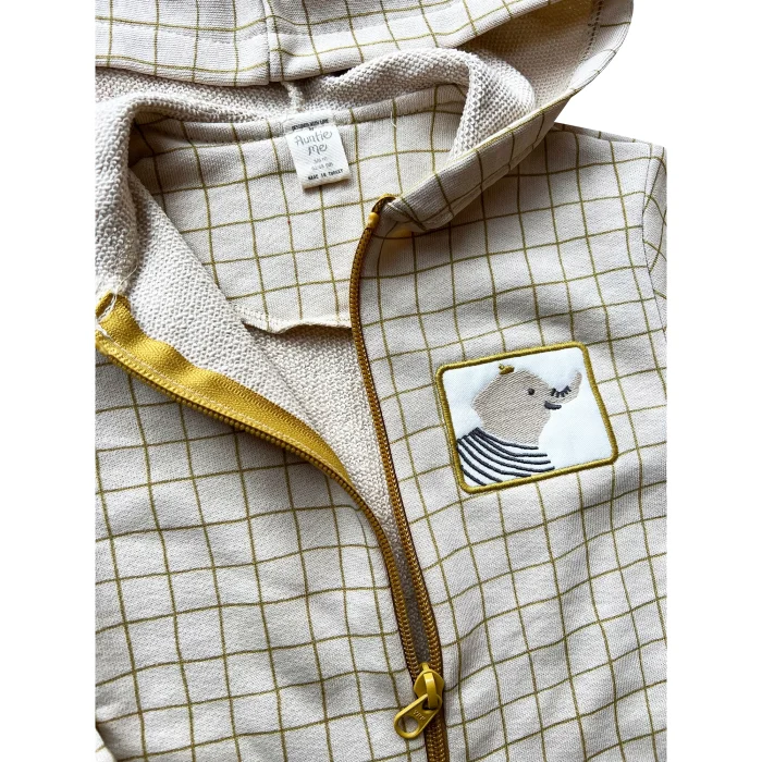 • 100% organic cotton futter fabric – Certified • Organic quantity printing • Organic embroidery crest detail • Patch on the knees • Zipper on front closure • Zipper end protection on the collar • Hood • Made in Turkey.