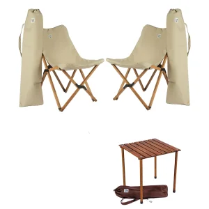 Product: Wooden Foldable Camping Table & Chair Set - Beige / 50*50*50cm