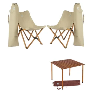 BAG THE JOY Wooden Roll Folding Camping and Picnic Table and BAG THE JOY Wooden Folding Camping and Garden Chair with Replaceable Cover and Bag, which allows you to enjoy the outdoors wherever you want, It will be indispensable for nature holidays, garden pleasure and picnics.