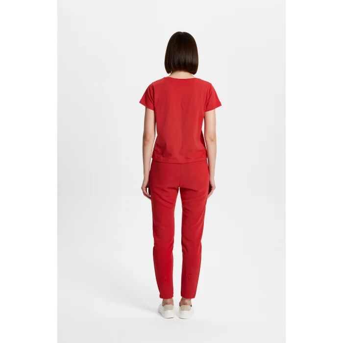 75% Good cotton, 25% Recycled polyester mid-height classic sweatpants. The waistband is laced at the front and has pockets on the side. The model is 1.74 meters tall and wears a size S. You can choose your own size.