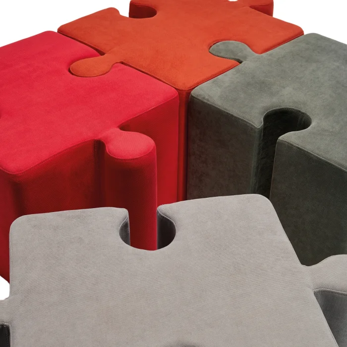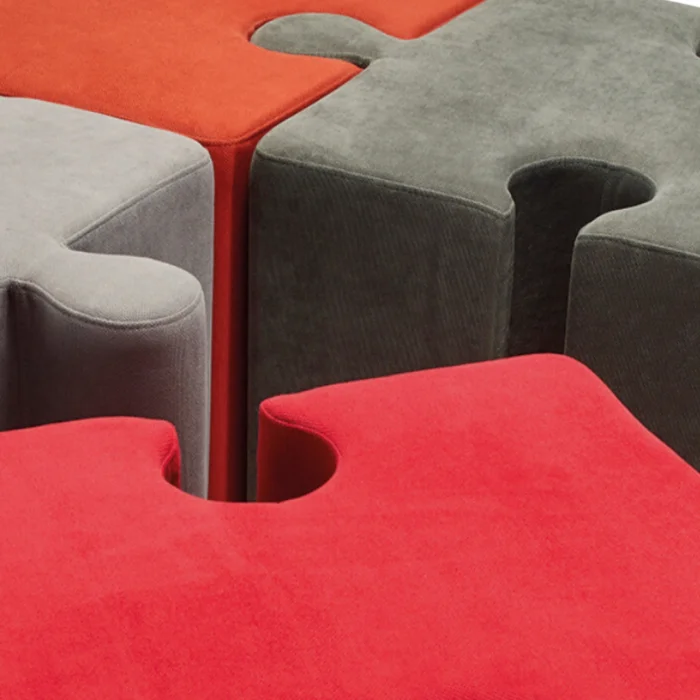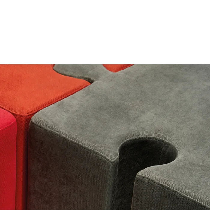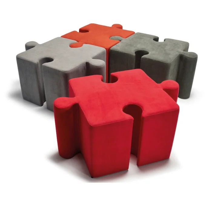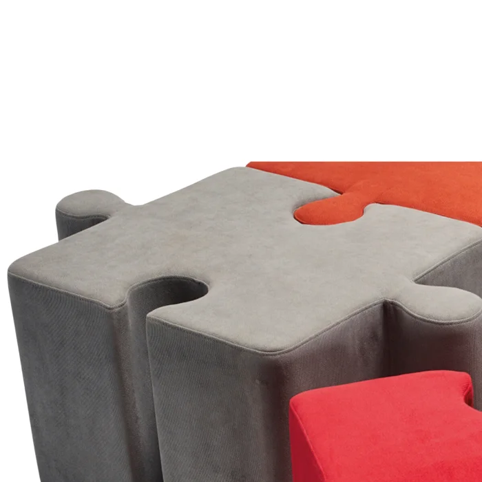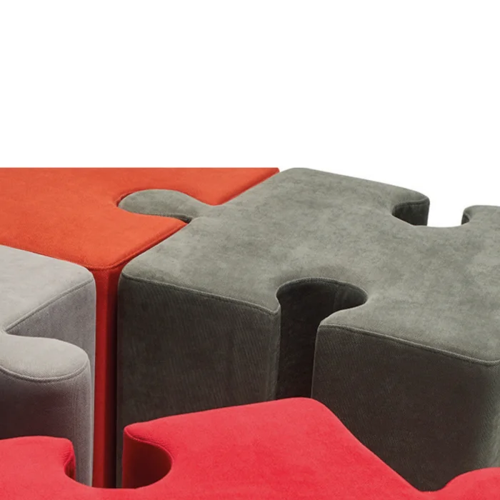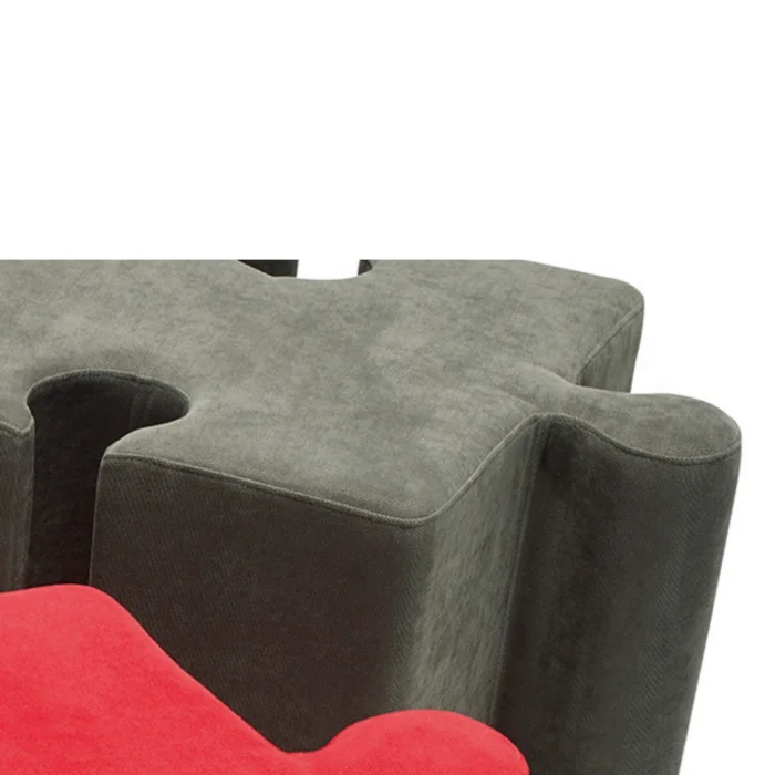 Fabric: Dark Grey. The artificial leather or fabric used in the puff upholstery is seamless and defect-free.