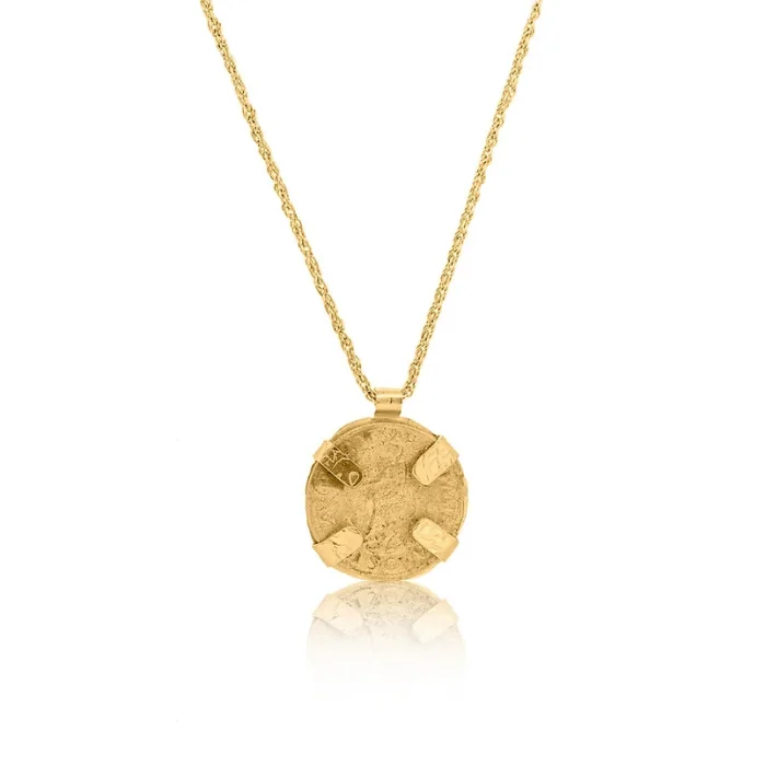 Double-sided Ancient Greek coin necklace. - It is actually manufactured properly. It is not original.- 24K gold plated over bronze It does not tarnish. The necklace is handmade.