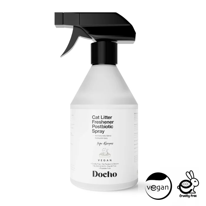 Docho Cat Litter Deodorizing Postbiotic Spray is specially formulated to effectively remove bad odors caused by cat litter. This 500 ML spray quickly breaks down waste materials that create bad odors, thus making your pets' toilet experience more enjoyable and helping you keep the air in your home fresh and clean. This special formula uses the power of postbiotics to destroy odor molecules naturally and effectively. With its environmentally friendly content, it neutralizes the bad odors caused by cat litter.• It contains postbiotics.• It is perfume-free.• It consists of raw materials with natural ingredients.• It eliminates bad odors naturally. Zinc SaltThanks to the 85% natural zinc salt it contains, it provides your little friend with a pleasant experience with its excellent odor neutralization feature against bad odors. MorePostbioticIt absorbs bad odors that may occur thanks to the microbiome-friendly postbiotic in its content. MoreFragrance-Free IngredientsThanks to its perfume-free formula, it provides peaceful use to your little friends in their private areas. MoreZinc SaltThanks to the 85% natural zinc salt it contains, it provides your little friend with a pleasant experience with its excellent odor neutralization feature against bad odors. How Do We Use More? Shake before use. Apply to the Cat Litter by spraying from a distance of 5-10 cm. How much? According to the intensity of the smell. To which region? Directly into the cat litter. Additional Tips? You can prevent bad odors that may occur by spraying freshly cleaned cat litter. Frequently Asked QuestionsWhat Does Docho Cat Litter Deodorizing Postbiotic Spray Do? Docho Cat Litter Deodorizing Postbiotic Spray makes your pet's toilet experience more enjoyable while maintaining the cleanliness and freshness of your home. Using the power of postbiotics, it neutralizes bad odors naturally and effectively. This makes your pet's toileting experience more enjoyable. How to Use Docho Cat Litter Deodorizing Postbiotic Spray? Shake before use. Turn the spray trigger tip to the spray position. Apply to the Cat Litter by spraying from a distance of 5-10 cm. Is Docho Cat Litter Deodorizing Postbiotic Spray Useful? For pet owners, Docho Cat Litter Deodorizing Postbiotic Spray is a very useful product. While it effectively removes bad odors caused by cat litter, it keeps your home's air clean and fresh thanks to its natural ingredients. In addition, it is preferred in terms of being perfume-free and containing postbiotics, neutralizing odors naturally instead of masking odors. How Many Months Is Docho Cat Litter Deodorizing Postbiotic Spray Effective? The effectiveness of Docho Cat Litter Deodorizing Postbiotic Spray may vary depending on the frequency of use and the amount used. Frequent and intensive use of the spray may differ depending on your furry friend's toilet habits. Therefore, the duration of effectiveness may vary depending on your usage habits and your pet's behavior.