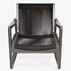 The wood is painted black. It is comfortable and lightweight with its design weave.