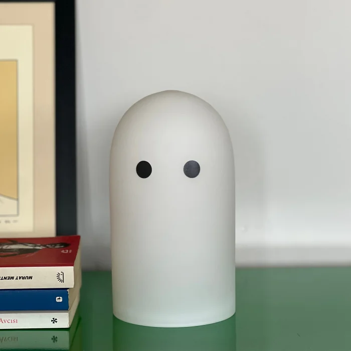 Combining a minimalist design with a playful touch, our Ghost Table Lamp stands out with its handcrafted glass body and unique character. When lit, it emits a warm, comforting glow; when turned off, it serves as a charming decorative object on its own.