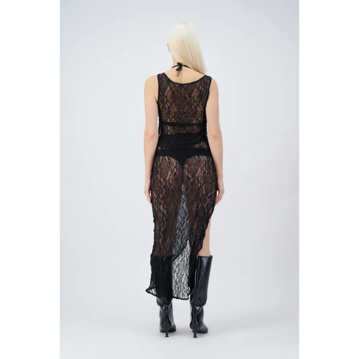“Feeling Clouds” is a modern interpretation of this mythological allure. Bubble lace fabric creates the feeling of being on clouds with its lightness and soft texture, while the bustier reflects the charm of a bold Huldra with its form-fitting cut. The long slit skirt is reminiscent of the movement of a cloud, gracefully tossed by the touch of the wind. This versatile design offers a look as striking as the sky at night parties, as well as the sparkle of a Huldra meeting the sunlight at beach parties. Feeling Clouds is a design that makes the wearer feel both sexy and free, opening a door to the magical world of nature and mythology. Wearing this design means dancing on the clouds like a Huldra.