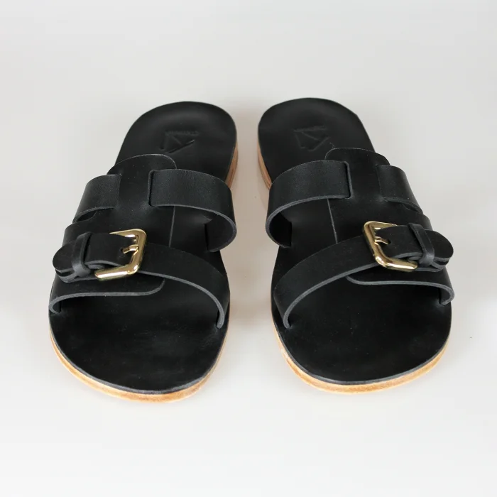 Natsu Buckle Detailed Slippers are made of high quality genuine leather from the sole to the upper. Its pet-supported sole has a comfortable wear. It provides a comfortable walk with the rubber details used in the leather sole design. With its stylish design, it is suitable for both city life and beach use.
